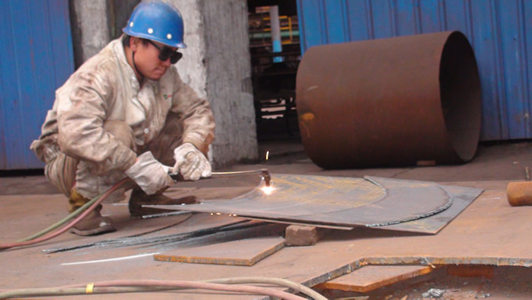 維修工人正在用氣焊切割鋼板
